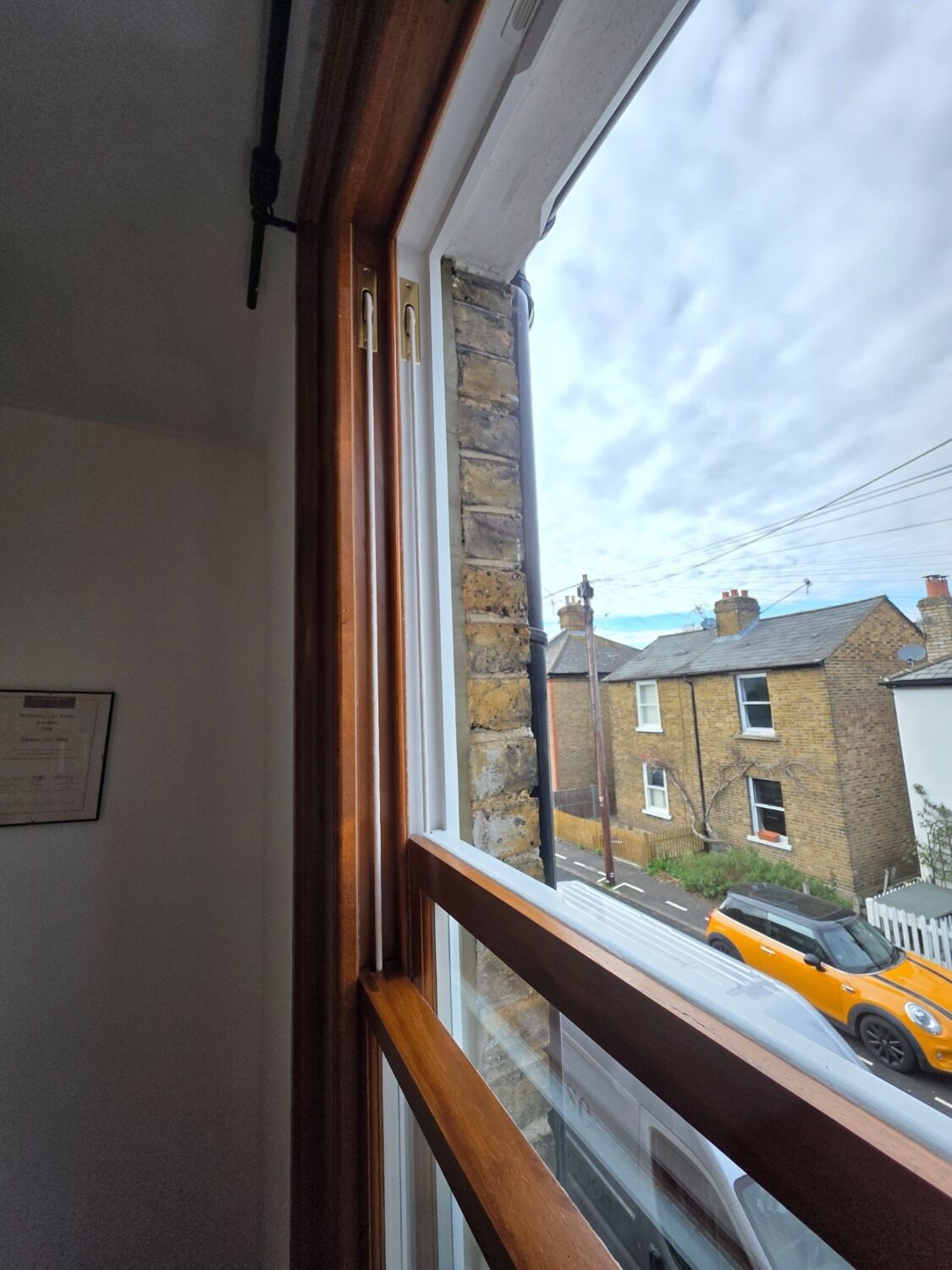 We manufactured and fitted two complete new Accoya timber double glazed sash windows to the front first floor elevation of this Victorian terrace cottage in Teddington.